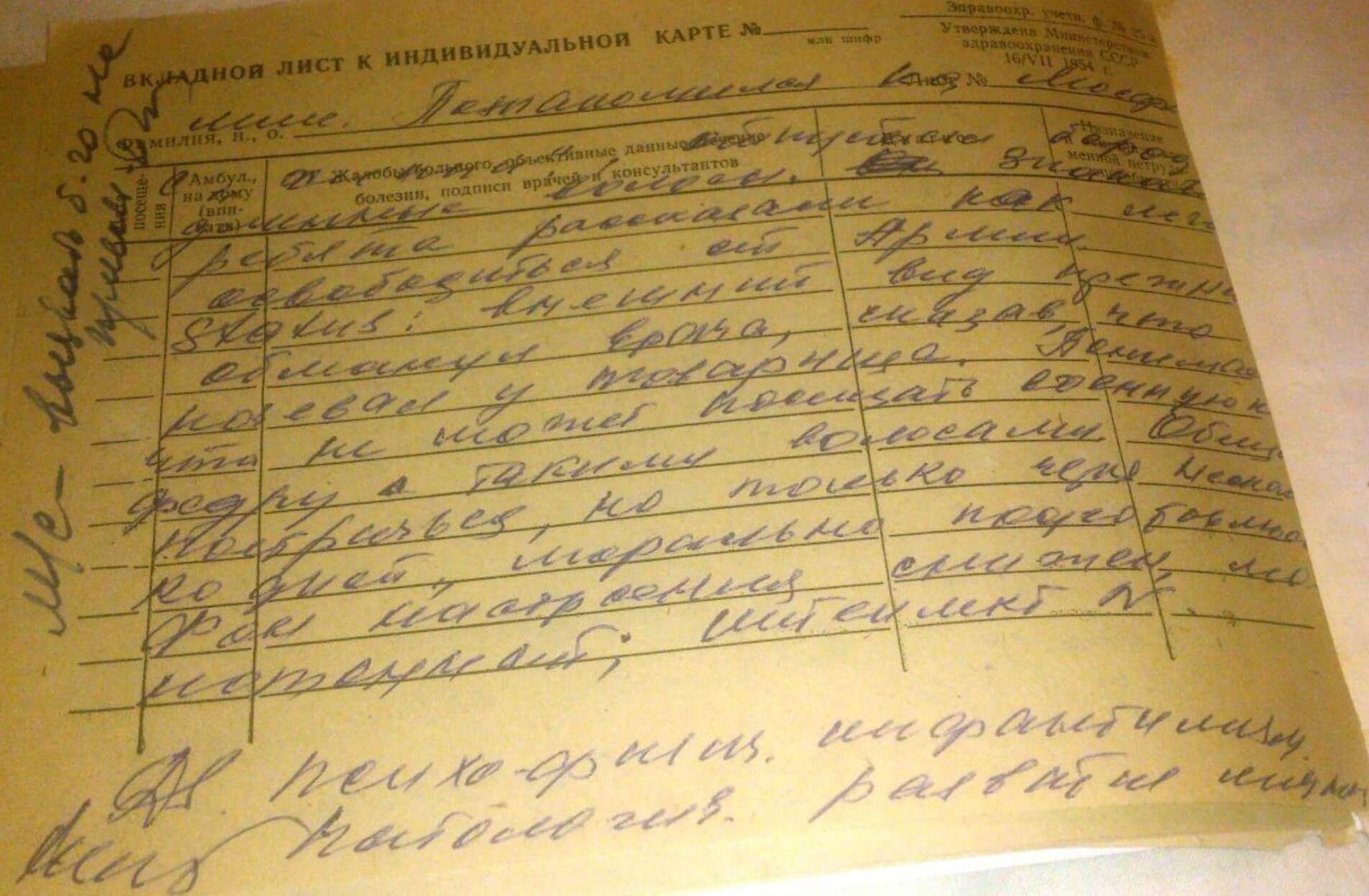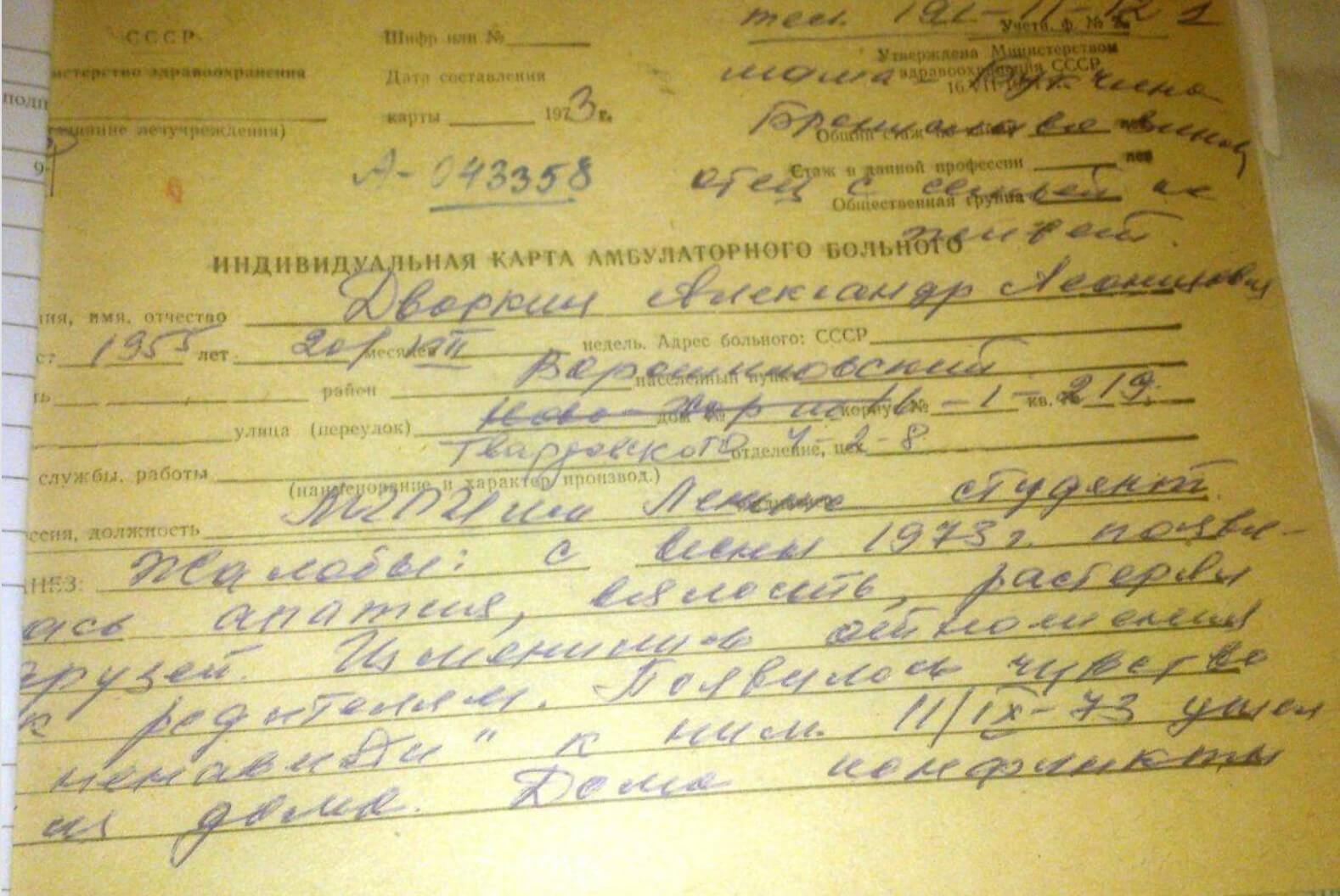 Information about Alexander Dvorkin from medical archives