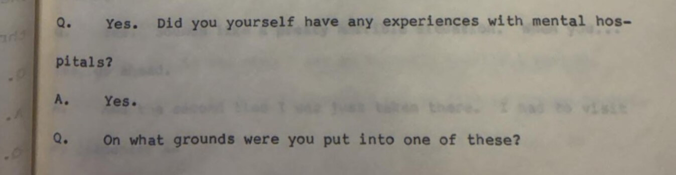 Q. Did you yourself have any experiences with mental hospitals?